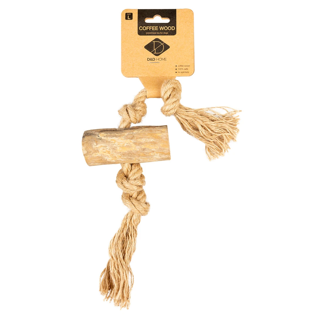 D&D HOME’s coffee-tree chewing root is a durable and hard chewing snack for dogs. Ideal for dogs with a great need to chew. The coffee-tree root is 100% natural. It is a good alternative for dogs that like to chew on tree branches. This is a hard chew but made of soft wood. The wood will not splinter. The rope is made of jute and provides extra play.