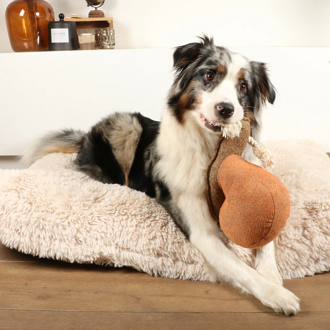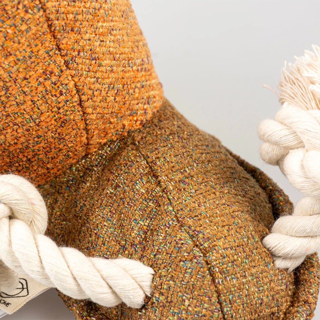 The Sheldon dog toy from D&D HOME made from durable materials. Unlike his fellows, Sheldon has sturdy feelers, made of knotted rope. Inside his house, he carries a large pancake squeaker.