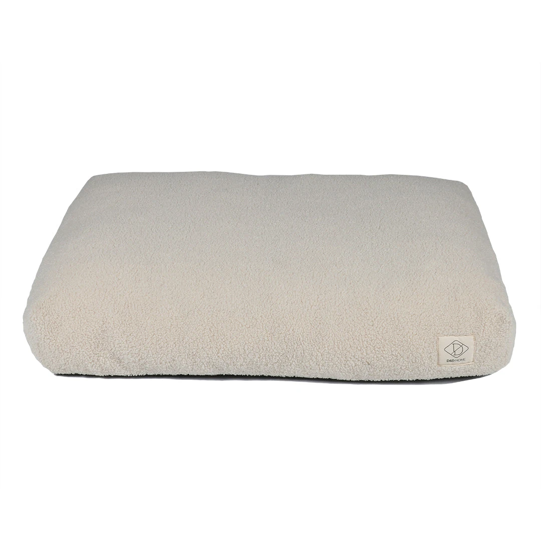 D&D Home Polly cushion is a stylish dog cushion filled with memory foam flakes that allows the cushion to shape itself to your dog`s body and provides support to prevent or relieve joint pain. The main characteristic of memory foam is that it is dimensionally stable and returns to its original shape. The cushion cover is made of a high quality, soft curly synthetic sheepskin that retains heat well. The cover is washable and as we have also used a woven inner cushion, it will last far longer if the cushion is taken in and out frequently. The weight of the cushion and the non-slip bottom mean that it will not move quickly.