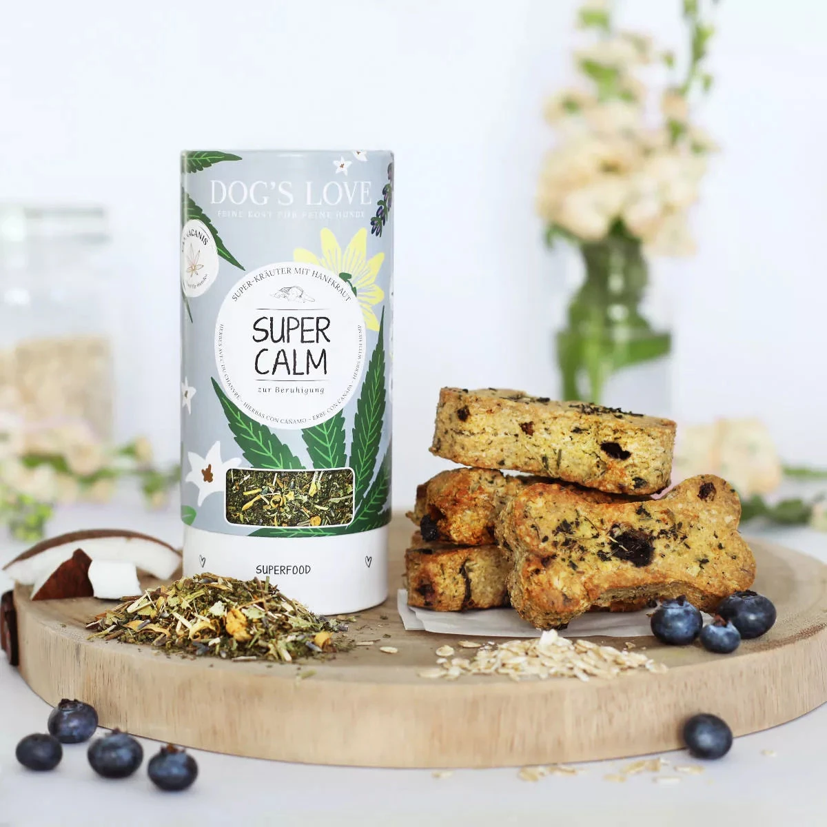 “Super Calm” herbal mixture for calming, for more serenity and a strong nerve layer. Supplementary food for dogs of all ages and breeds. This herbal mixture is part of the “CANNA CANIS” hemp line from DOG’S LOVE.