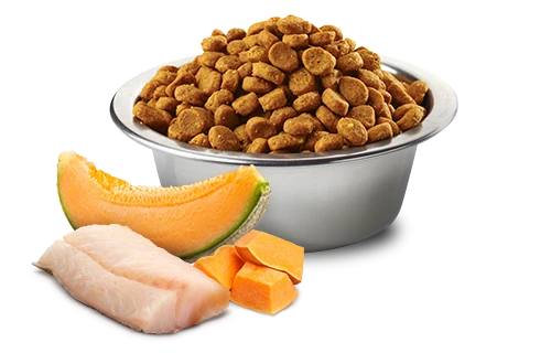 cod, dehydrated cod, sweet potatoes, herring oil, dehydrated herring, dried pumpkin, dehydrated shrimp (source of glucosamine hydrochloride and chondroitin sulfate), pea fiber, dried carrot, suncured alfalfa meal, inulin,