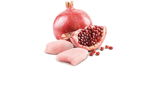 Chicken, herring, eggs, herring oil, sweet potatoes, pomegranate, fructooligosaccharide, calcium carbonate, potassium chloride, vitamin A supplement, vitamin D3 supplement, vitamin E supplement, choline chloride, zinc methionine hydroxy analogue chelate, manganese methionine hydroxy analogue chelate, ferrous glycine complex, copper methionine hydroxy analogue chelate, selenium yeast, DL-methionine, taurine, L-Carnitine.
