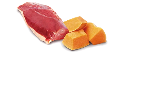 Duck, chicken, herring, pumpkin, eggs, herring oil, sweet potatoes, fructooligosaccharide, chondroitin sulfate, glucosamine hydrochloride, vitamin A supplement, vitamin D3 supplement, vitamin E supplement, choline chloride, zinc methionine hydroxy analogue chelate, manganese methionine hydroxy analogue chelate, ferrous glycine complex, copper methionine hydroxy analogue chelate, selenium yeast, DL-methionine, taurine, L-Carnitine.