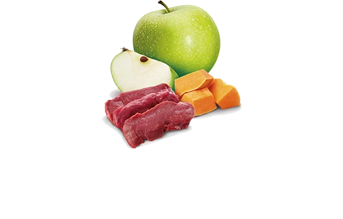 Venison, chicken, herring, pumpkin, eggs, herring oil, sweet potatoes, apples, fructooligosaccharide, chondroitin sulfate, glucosamine hydrochloride, vitamin A supplement, vitamin D3 supplement, vitamin E supplement, choline chloride, zinc methionine hydroxy analogue chelate, manganese methionine hydroxy analogue chelate, ferrous glycine complex, copper methionine hydroxy analogue chelate, selenium yeast, DL-methionine, taurine, L-Carnitine.