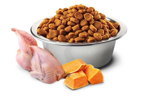 Fresh quail (30%), dehydrated quail (28%), pea starch, chicken fat, dehydrated pumpkin (5%), dehydrated whole eggs, fresh herring, dehydrated herring, herring oil, dried carrots, sun-cured alfalfa meal, inulin, fructooligosaccharides, yeast extract (source of mannan-oligosaccharides), dehydrated pomegranate (0,5%), dehydrated apple, dehydrated spinach, psyllium (0.3%), dehydrated blackcurrant, dehydrated sweet orange, dehydrated blueberry, salt, brewers dried yeast, turmeric (0.2%), glucosamine, chondroitin sulfate, vitamin A supplement, vitamin D3 supplement, vitamin E supplement, ascorbic acid, niacin, calcium pantothenate, riboflavin, pyridoxine hydrochloride, thiamine hydrochloride, biotin, folic acid, vitamin B12 supplement, choline chloride, beta‐carotene, zinc methionine hydroxy analogue chelate, manganese methionine hydroxy analogue chelate, ferrous glycine, copper methionine hydroxy analogue chelate, DL‐methionine, taurine, L-Carnitine, aloe vera extract, green tea extract, rosemary extract, mixed tocopherols (a preservative).
