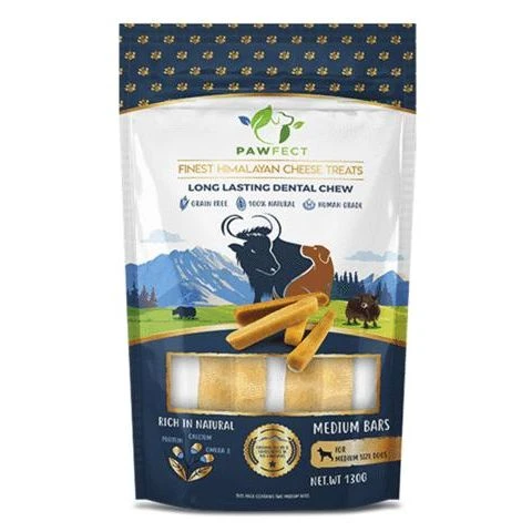 Pawfect Chew Medium Bars are made from a traditional Himalayan recipe. The best cheese is used to make the Pawfect rewards: from yak and cow milk, these animals were raised in the mountains of the Himalayas. There are no antibiotics and hormones present in this product.