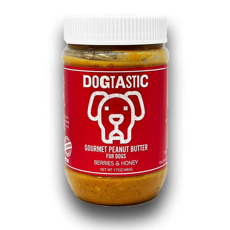 Spread Dogtastic Peanut Butter into SodaPup emat lick mats, treat dispensers and on dog treats.
