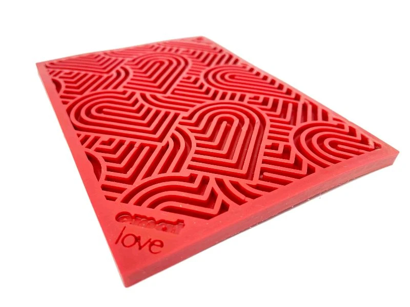 Crazy Dog LOVE is always in style and your dog will absolutely love this heart inspired lick mat. Lick mats are the hottest new dog enrichment toy and for good reason! Use this licking mat with a heart design for small dogs or smaller snacks.