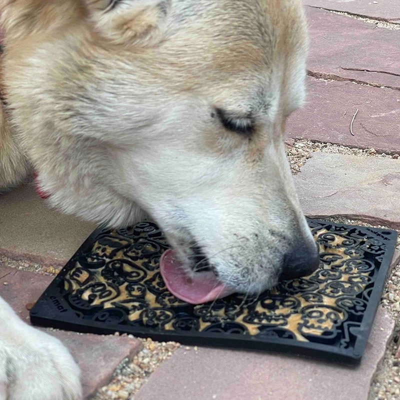 Spot will be calm and collected during the zombie apocalypse while using this mat. Lick mats are the hottest new dog enrichment toy and for good reason! Licking releases relaxing hormones, helping calm and ease anxiety.