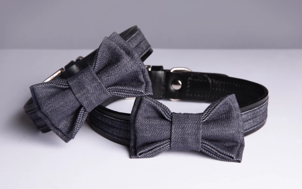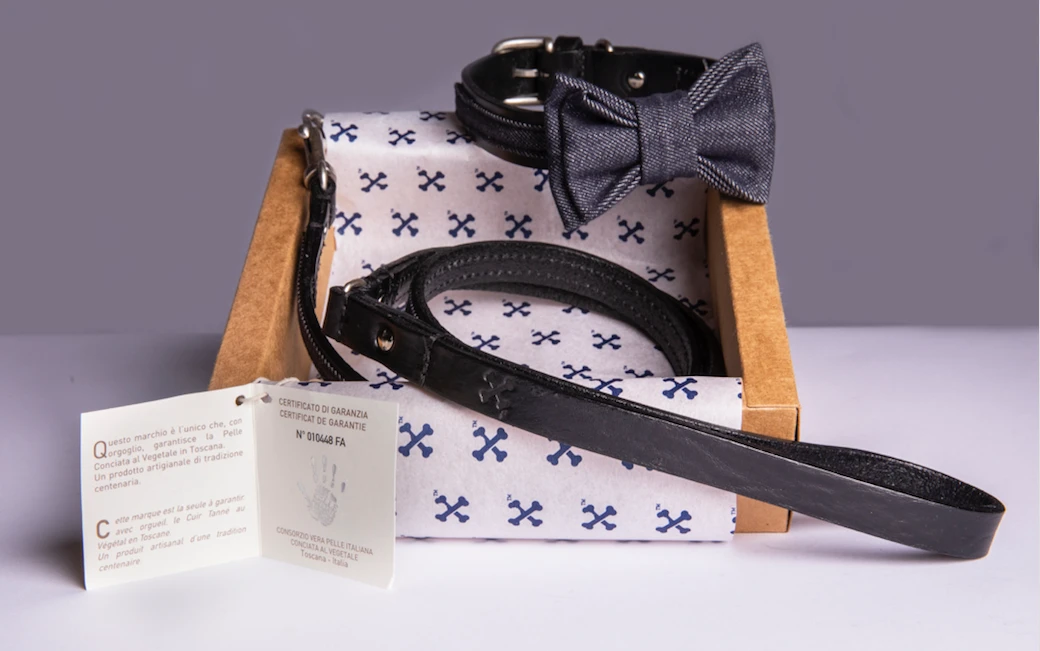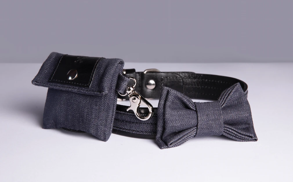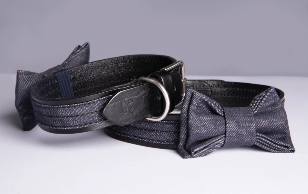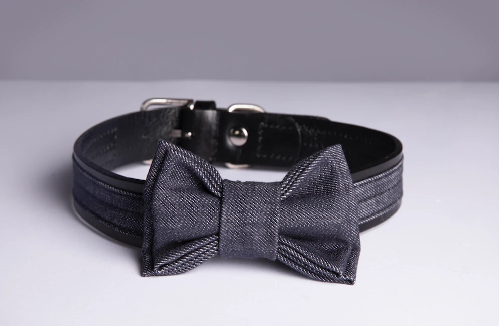 RIVET collar is the signature item of The Denim Dog line, Handcrafted in Tuscany, Italy from Italian vegetable tanned bull leather and Italian Berto’s denim no-fade. On the best leather dog collars, the rich tones in the leather combined with raw denim and teamed with antique finish hardware give a strong authentic denim look and a classy edge. The denim bow is easily removable, you can decide to add it or remove it as you and your doggy wish. You can also move the bow around and let your dog wear it on his throat, centered on his neck or on the side. Each dog collar is branded with The Denim Dog logo.
