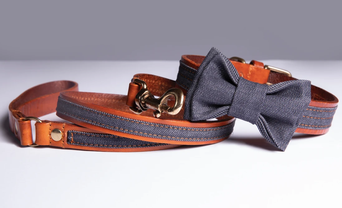 RIVET collar is the signature item of The Denim Dog line, Handcrafted in Tuscany, Italy from Italian vegetable tanned bull leather and Italian Berto’s denim no-fade. On the best leather dog collars, the rich tones in the leather combined with raw denim and teamed with antique finish hardware give a strong authentic denim look and a classy edge. The denim bow is easily removable, you can decide to add it or remove it as you and your doggy wish. You can also move the bow around and let your dog wear it on his throat, centered on his neck or on the side. Each dog collar is branded with The Denim Dog logo.